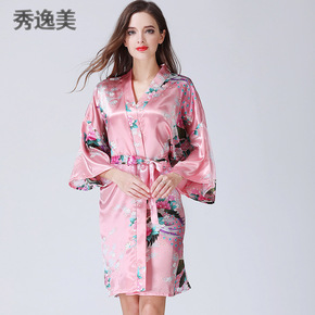 跨境新款胖mm大码家居睡衣独立站新款丝色丁印花睡袍...