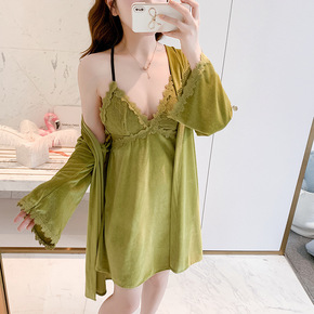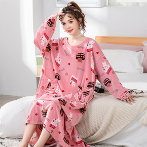 法兰绒秋冬长袖睡衣女加厚加绒睡裙睡袍双面绒长款宽松...