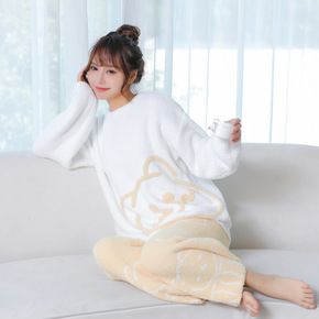 秋冬女睡衣软绵绵舒适半边绒可爱小熊毛线学生家居服外...