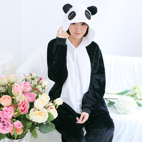 软绵绵法兰绒熊猫连体睡衣动物女冬季珊瑚卡通长袖批发...