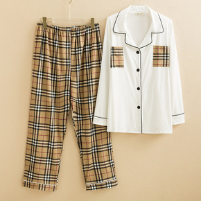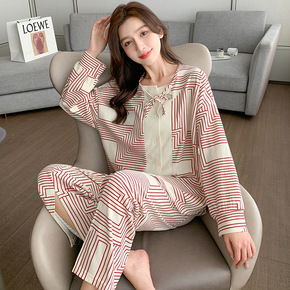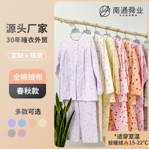 睡衣女春秋冬季纯棉长袖开衫高级感家居服薄款休闲可外...