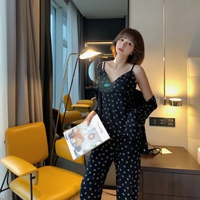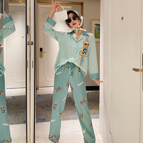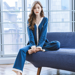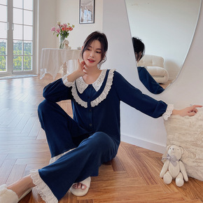 2021年秋冬新款女士套装居家睡衣日韩特色蕾丝领可...