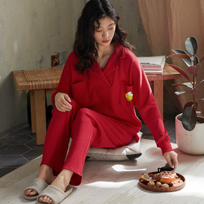 春秋季纯棉情侣睡衣结婚新婚套装高档婚用红色本命年家...