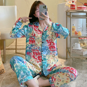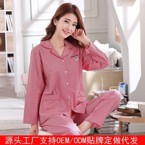 学生宿舍睡衣女纯棉长袖春秋甜美糖果花朵家居服宽松条...