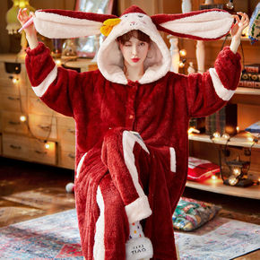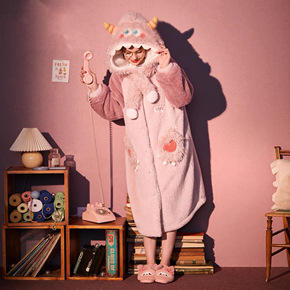 珊瑚绒睡衣女冬季加厚加绒学生可爱法兰绒长款睡袍秋冬...