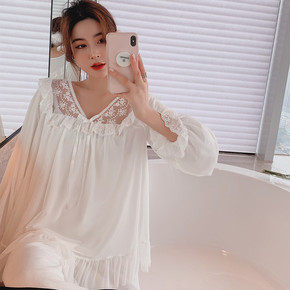 秋季新款可外穿少女休闲长袖睡裙公主风居家舒适纯棉宽...