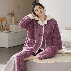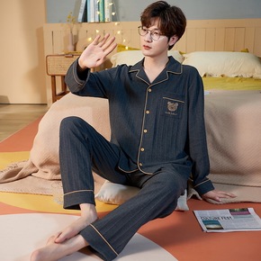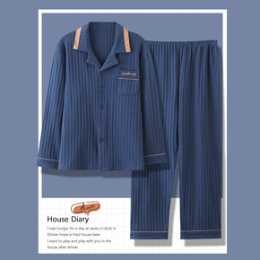 秋冬男士新款棉质绒布磨毛西服领纽扣睡衣睡裤家居服套...
