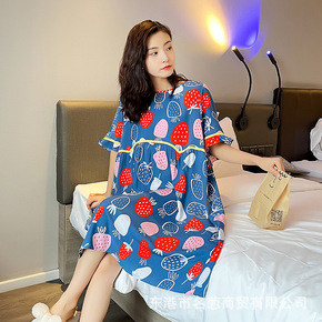 棉绸短袖睡裙女春夏加肥加大家居服宽松薄款睡衣女可外...