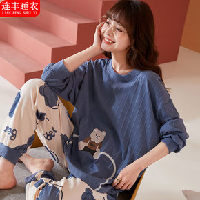 亦绚睡衣女士秋冬季华夫格棉长袖长裤可外穿休闲家居服...