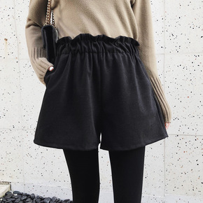 毛呢短裤女秋冬季2021新款高腰花苞阔腿宽松韩版休...