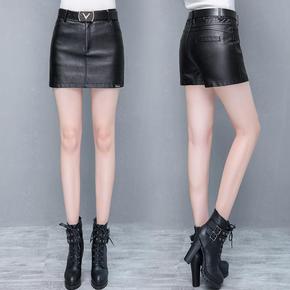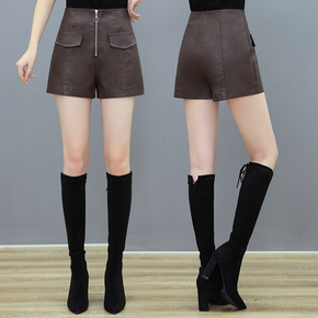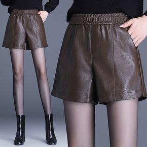 【有内衬】秋冬新款皮短裤女学生高腰韩版PU短皮裤宽...