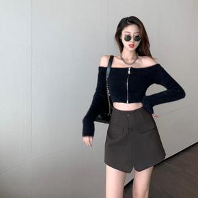 2021冬季新品纯色时尚女士短裤显瘦高腰短裤子61...