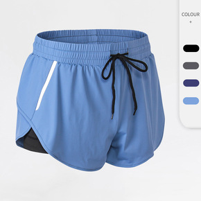 跨境新款欧美运动短裤女夏防走光跑步休闲健身房速干透...