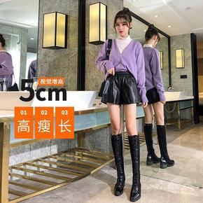 韩版高腰pu皮短裤女黑色百搭春秋冬加绒大码直筒修身...