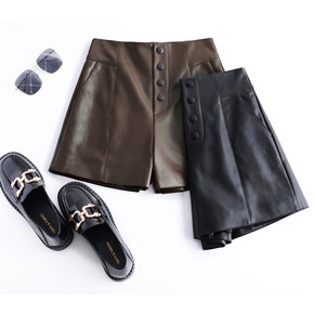 2020秋冬新款真皮短裤五分休闲裤高腰宽松显瘦中裤...