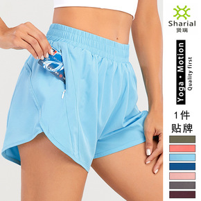 2021新款透气网纱防走光瑜伽短裤户外休闲跑步运动...