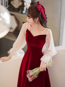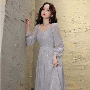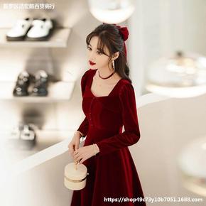晚礼服裙女2021新款秋冬显瘦气质平时可穿学生宴会...