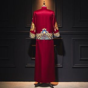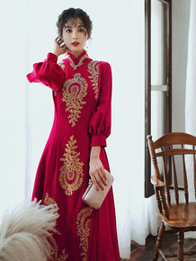 2021新款敬酒服新娘冬季酒红色旗袍结婚订婚礼服连...