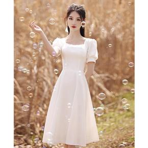 领证小白裙白色小晚礼服女法式洋装小个子平时可穿夏白...