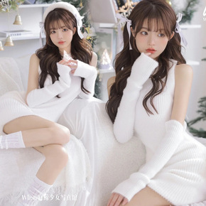 影楼写真服装2021秋冬新款白色毛衣圣诞主题拍照纯...