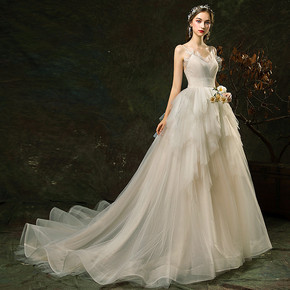 吊带轻主婚纱礼服裙新款新娘法式简约出门纱森系拖尾冬...