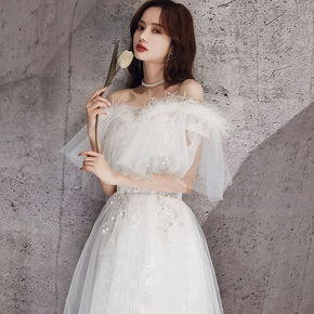 年会晚礼服裙女2021新款一字肩气质优雅名媛宴会生...
