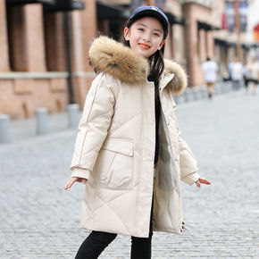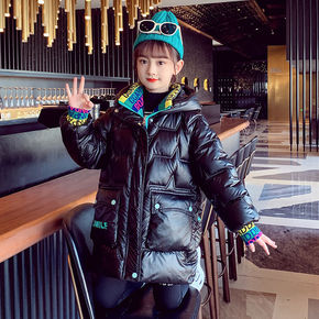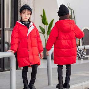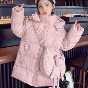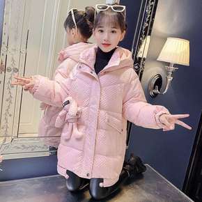 新款儿童羽绒棉服女童中长款秋外套中大童连帽洋气棉衣...