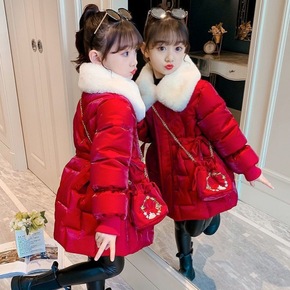 女童棉衣冬装洋气2021新款儿童装中长款羽绒棉服免...