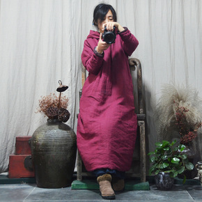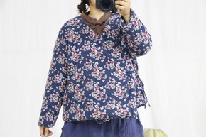 棉麻女装冬棉衣磨毛碎花斜襟系带棉衣复古布衣保暖棉服...