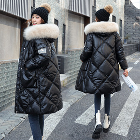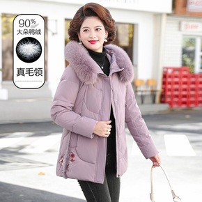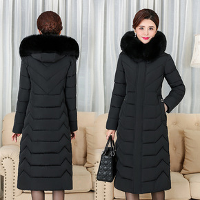 欧美大码羽绒棉服女中长款连帽大毛领中老年妈妈冬季新...