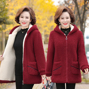 妈妈装冬装卫衣外套棉衣新款棉服加绒加厚中老年羊羔毛...