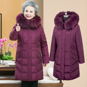 中老年棉衣女冬装加肥加大码妈妈装羽绒棉服中长款过膝...