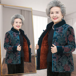 奶奶装棉衣加绒加厚-岁妈妈冬装外套老年人棉袄女老太...