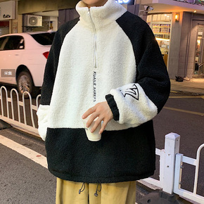 羊羔绒外套男秋冬加厚半拉链高领港风宽松潮流百搭20...