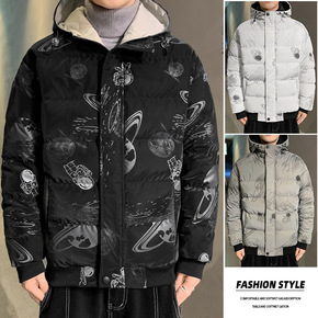 韩版加厚风衣 中长款抽绳宽松百搭棉衣外套日系潮流外...
