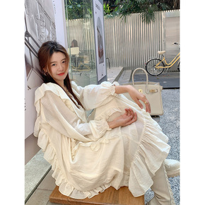 2021女装荷叶边v领春装连衣裙女法式显瘦温柔风别...