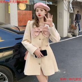 温柔风毛呢冬季2021新款法式气质收腰设计感加厚呢...