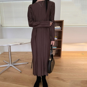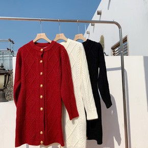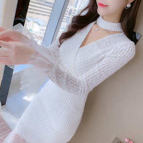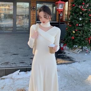 法式复古针织连衣裙女秋冬内搭修身显瘦气质长款v领毛...