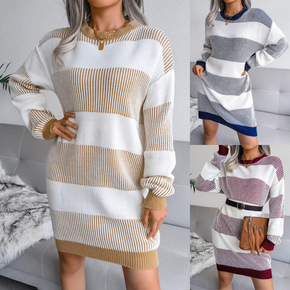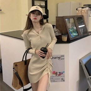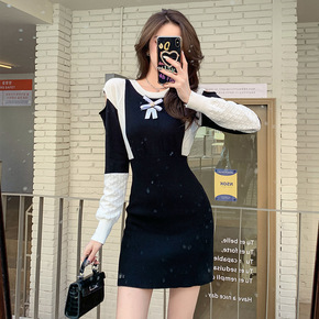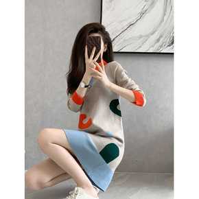 2021秋季新款链条卫衣裙韩版休闲设计款针织连衣裙...