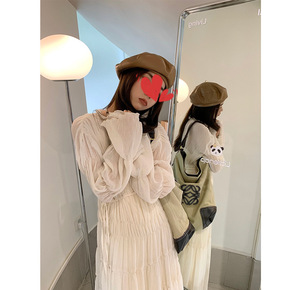 情书 羊毛混纺高领灯笼袖宽松针织连衣裙女2021秋...