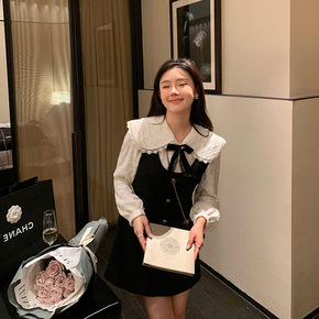 法式优雅小香风背带黑色连衣裙女冬季气质时髦精致百搭...