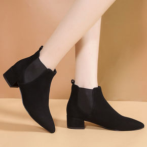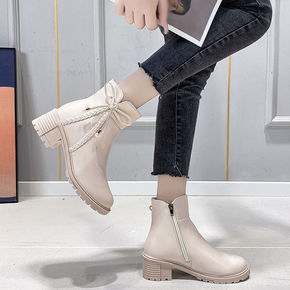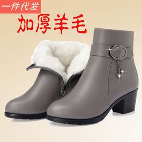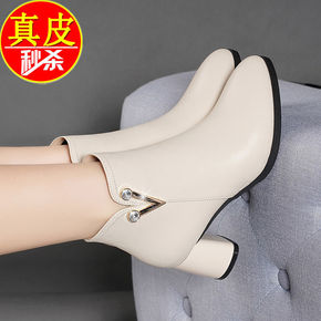 女鞋子女靴子女马丁靴软皮中筒靴加绒保暖鞋粗跟高跟鞋...