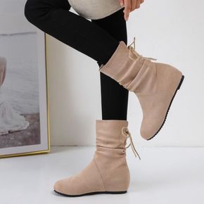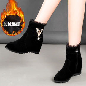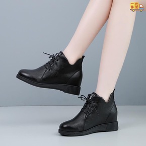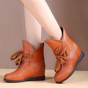 新款内增高短靴女系带加绒加厚防滑时尚妈妈马丁靴棉圆...