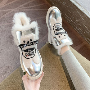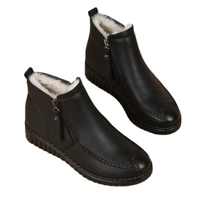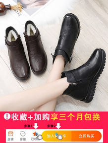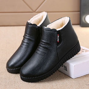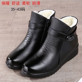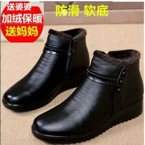 冬季妈妈老人棉鞋保暖加厚加绒皮鞋绒毛短靴女中老年平...