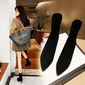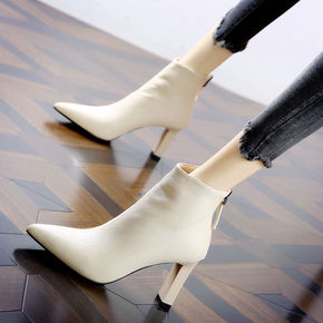 女士小短靴洋气高跟鞋细跟2022新款冬季加绒法式靴...