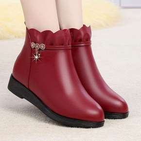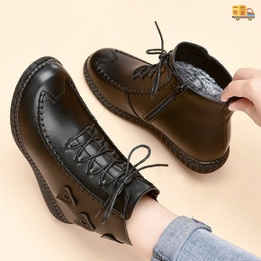 妈妈棉鞋女冬季加绒保暖中老年人皮鞋加厚平底短靴子软...