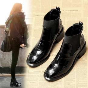 粗跟短靴女chic鳄鱼皮靴女靴2021新款秋冬中跟...