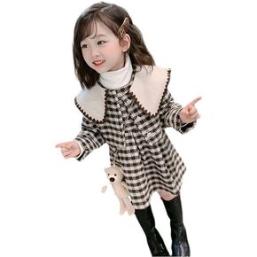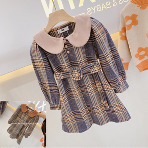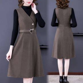 秋冬季法式新款打底配大衣加厚格子毛呢背带连衣裙两件...