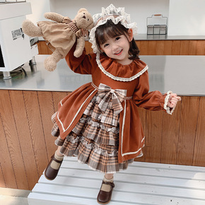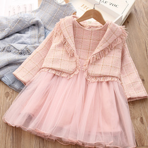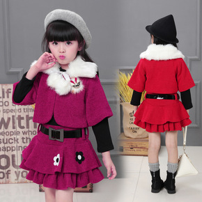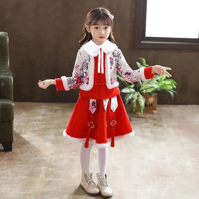 女童呢子背心连衣裙秋冬新款宝宝儿童红色洋气加绒A字...