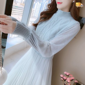 冬季加厚针织子女装秋冬装2022年新款收腰显瘦网纱...